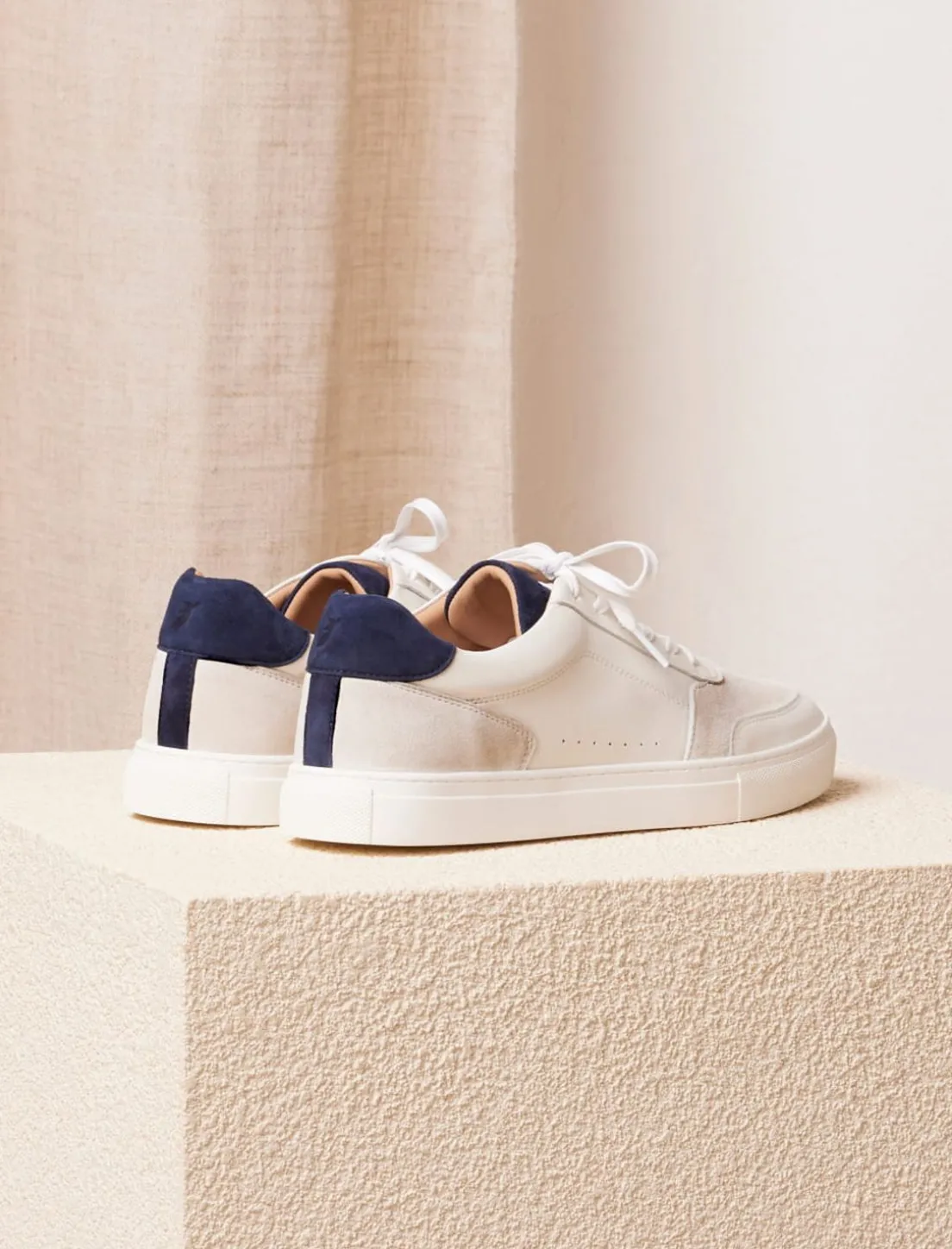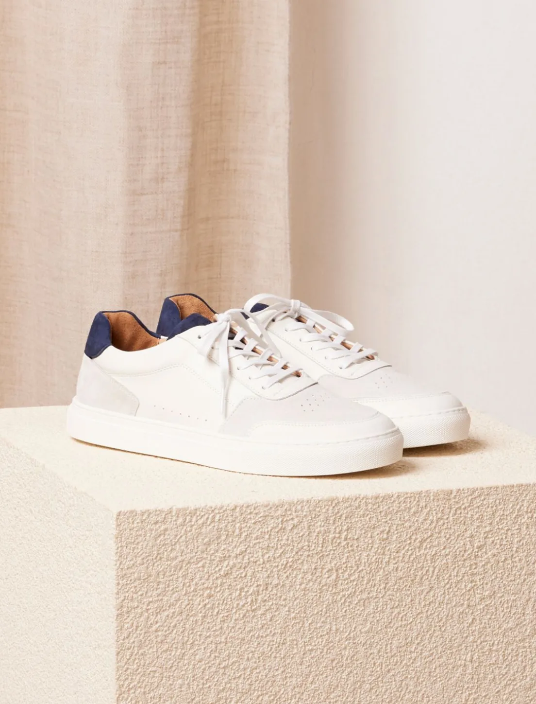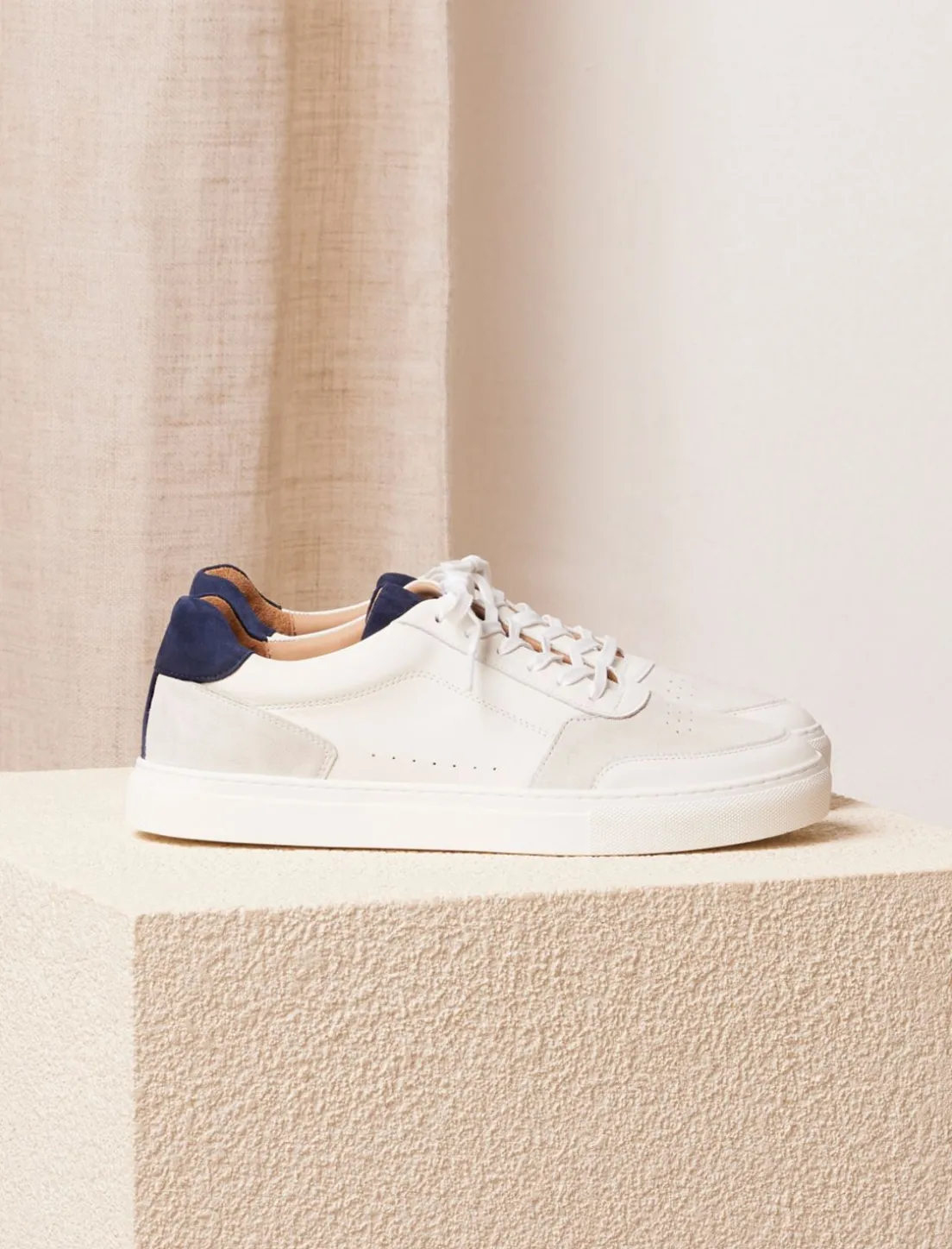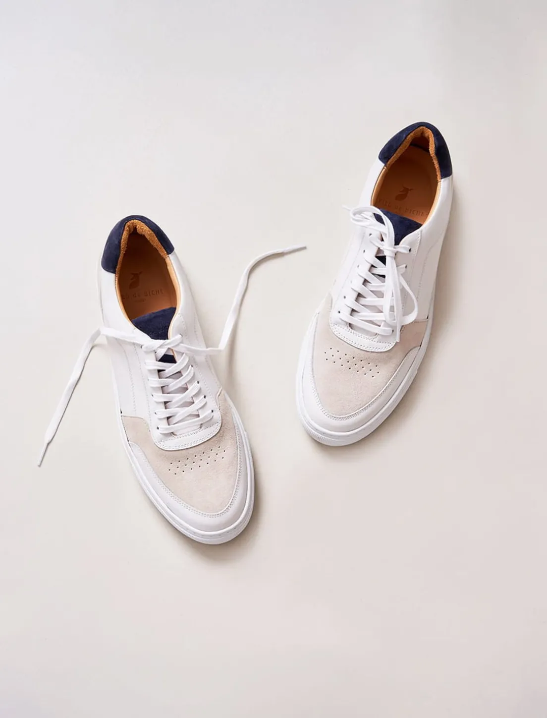 - Sneakers Frisco V3 En Cuir Lisse De Vachette Blanc Et Chèvre Velours Bleu Nuit